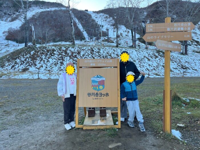 山頂まではロープウェイとリフトと二段あり、ロープウェイを上った天神平駅からは雪が積もっていて、リフトを上った山頂の天神峠駅は何と5℃。登山の方々はみんなダウンを着ていて本格防寒でした。我が家は軽装だったので寒かった~。